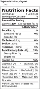 Ingredients: Organic Golden Amber Durum Wheat Semolina, Organic Beet Powder, Organic Spinach Powder, Organic Carrot Powder, Organic Annatto Powder